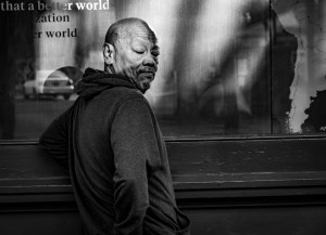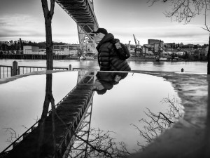 I took a shot of Max sitting by the fountain in Directors Park and went on to Pioneer Courthouse Square. He was right behind me when I arrived. He asked if I had taken his picture and if he could see it. This usually means that he wanted it removed. I said it was shot…